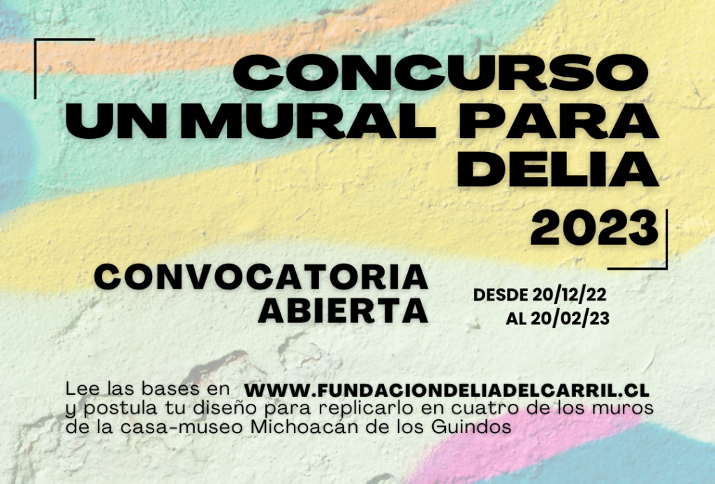 “Un mural para Delia”, se denomina el concurso abierto especialmente a residentes de la Comuna de La Reina o de la RM que culminará con una intervención en 3 paredes de la Casa Museo Delia del Carril, ubicada en Av. Lynch Norte 164.